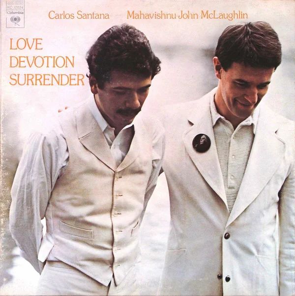 With the exception of Coltrane’s “Naima” and McLaughlin’s “Meditation,” this album consists of merely three extended guitar jams played on the spiritual ecstasy tip – both men were devotees of guru Shri Chinmoy at the time. The assembled band included members of Santana’s band and the Mahavishnu Orchestra in Michael Shrieve, Billy Cobham, Doug Rauch, Armando Peraza, Jan Hammer (playing drums!), and Don Alias. But it is the presence of the revolutionary jazz organist Larry Young – a colleague of McLaughlin’s in Tony Williams’ Lifetime band – that makes the entire project gel. He stands as the great communicator harmonically between the two very different guitarists whose ideas contrasted enough to complement one another in the context of Young’s aggressive approach to keep the entire proceeding in the air. In the acknowledgement section of Coltrane’s “A Love Supreme,” which opens the album, Young creates a channel between Santana’s riotous, transcendent, melodic runs and McLaughlin’s rapid-fire machine-gun riffing. Young’ double-handed striated chord voicings offered enough for both men to chew on, leaving free-ranging territory for percussive effects to drive the tracks from underneath. Check “Let Us Go Into the House of the Lord,” which was musically inspired by Bobby Womack’s “Breezing” and dynamically foreshadowed by Pharoah Sanders’ read of it, or the insanely knotty yet intervallically transcendent “The Life Divine,” for the manner in which Young’s organ actually speaks both languages simultaneously. Young is the person who makes the room for the deep spirituality inherent in these sessions to be grasped for what it is: the interplay of two men who were not merely paying tribute to Coltrane, but trying to take his ideas about going beyond the realm of Western music to communicate with the language of the heart as it united with the cosmos. After three decades, Love Devotion Surrender still sounds completely radical and stunningly, movingly beautiful. – Thom Jurek, AllMusic