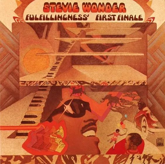 Rolling Stone After the righteous anger and occasional despair of the socially motivated Innervisions, Stevie Wonder returned with a relationship record: Fulfillingness’ First Finale. The cover pictures his life as an enormous wheel, part of which he’s looking ahead to and part of which he’s already completed (the latter with accompanying images of Little Stevie, JFK and MLK, the Motor Town Revue bus, a child with balloons, his familiar Taurus logo, and multiple Grammy awards). The songs and arrangements are the warmest since Talking Book, and Stevie positively caresses his vocals on this set, encompassing the vagaries of love, from dreaming of it (“Creepin’”) to being bashful of it (“Too Shy to Say”) to knowing when it’s over (“It Ain’t No Use”). The two big singles are “Boogie on Reggae Woman,” with a deep electronic groove balancing organic congas and gospel piano, and “You Haven’t Done Nothin’,” an acidic dismissal of President Nixon and the Watergate controversy (he’d already written “He’s Misstra Know-It-All” on the same topic).